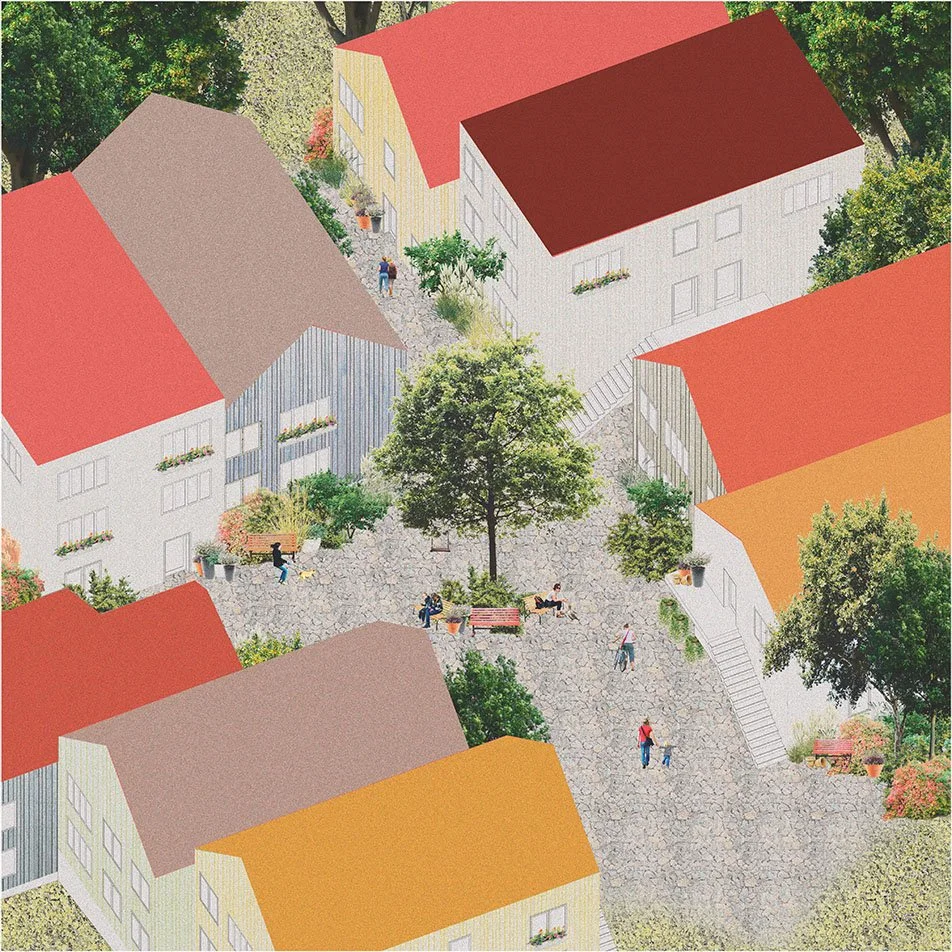 Eksisterende bygningsmasse videreutvikles fremfor å rives.