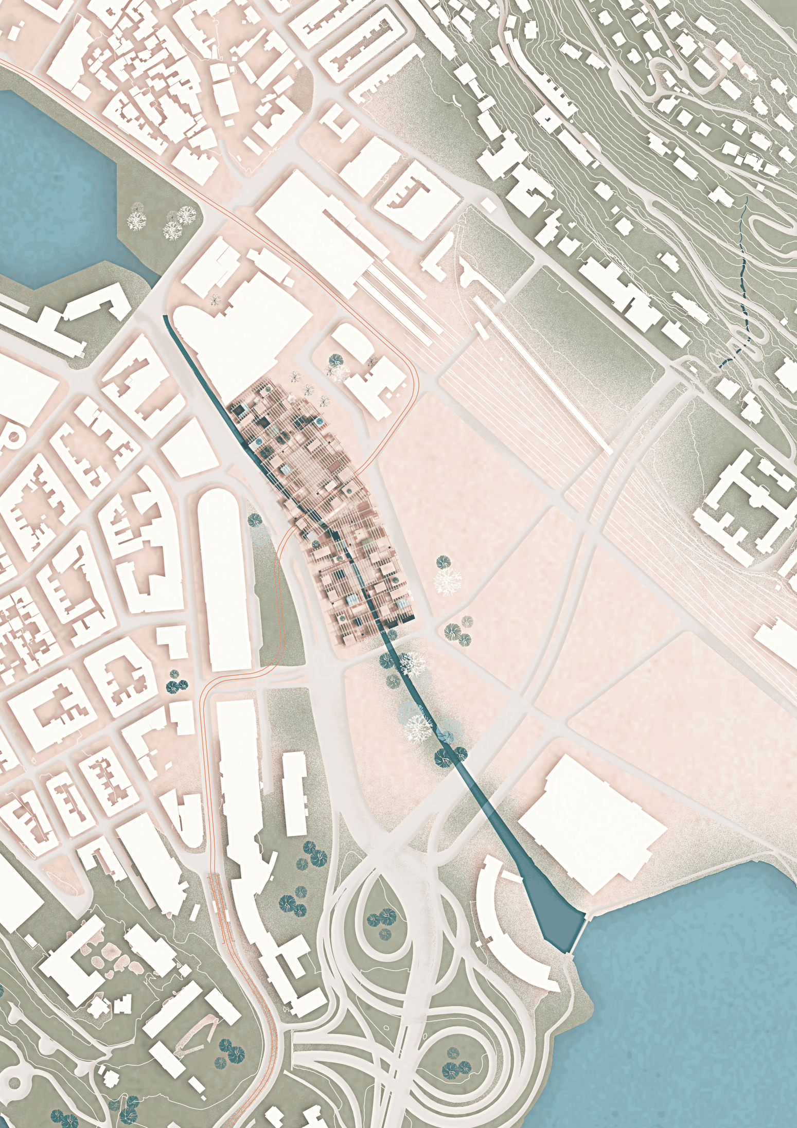 Begrepet vev fungerer som et sentralt konsept og metodisk verktøy i prosjektet. Det brukes både analytisk og formgivende for å identifisere og styrke forbindelser på tvers av infrastrukturen, og for å flette sammen bevegelse, program, struktur og landskap. Gjennom denne tilnærmingen undersøker prosjektet hvordan en tidligere lukket og ensidig konstruksjon kan utvikles til et porøst, tilgjengelig og levende urbant område.