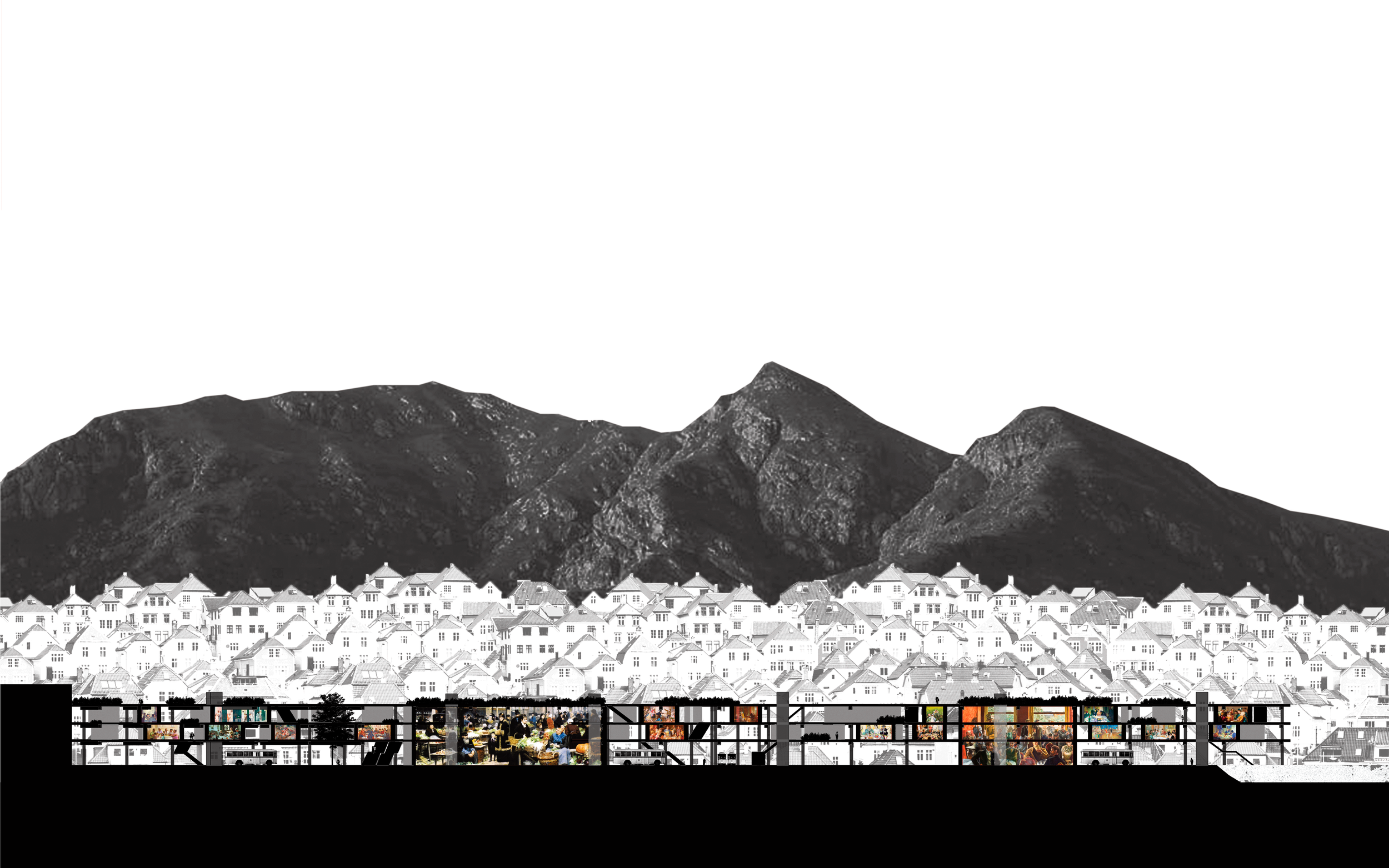 Prosjektet er utviklet innenfor et bilfritt fremtidsscenario, der eksisterende parkeringsstruktur videreføres gjennom transformasjon fremfor riving. Gjennom strategisk subtraksjon av den eksisterende konstruksjonen åpnes bygningsmassen opp, samtidig som nye programmer, boliger og urbane funksjoner legges til. Resultatet er et flerplanlig byrom som aktiveres både horisontalt og vertikalt.